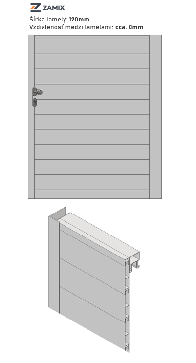 Tento typ výplne využíva 120 mm lamelu s presným zámkovým profilom, určenú pre plne nepriehľadné riešenia.