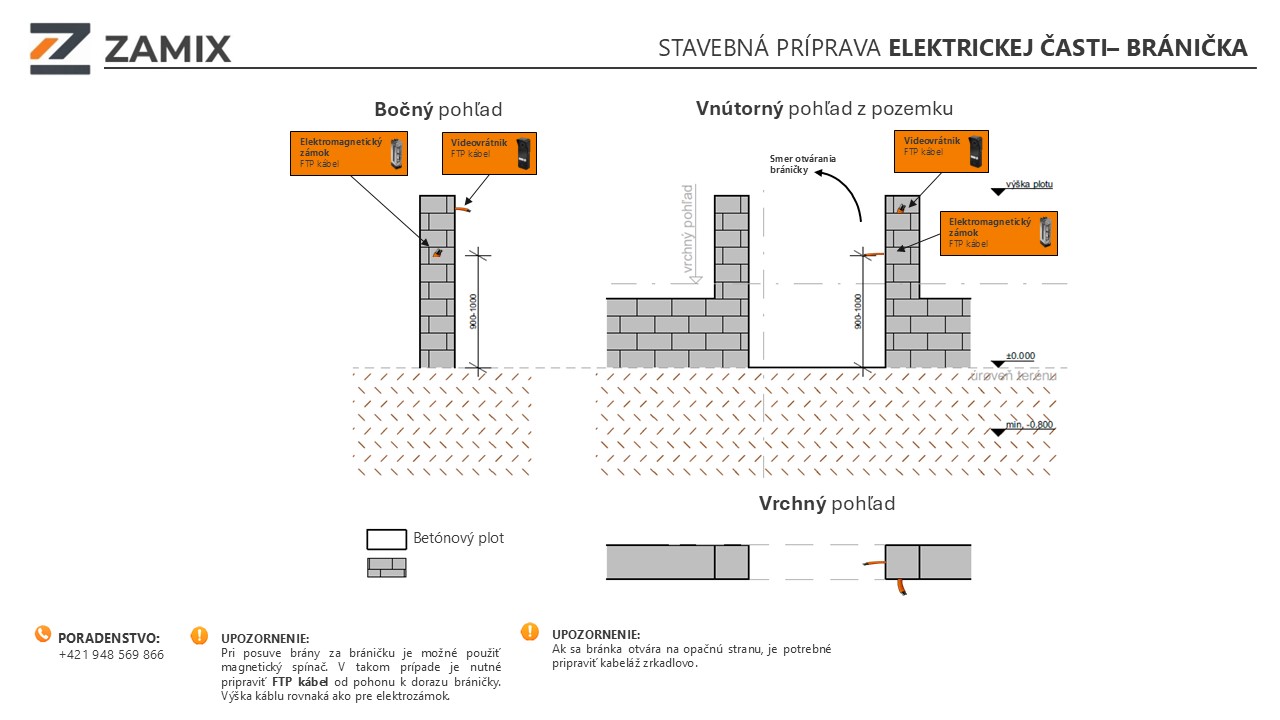 Aby montáž bráničky prebehla presne a bez dodatočných zásahov, je potrebné pripraviť kabeláž podľa technických požiadaviek nižšie.