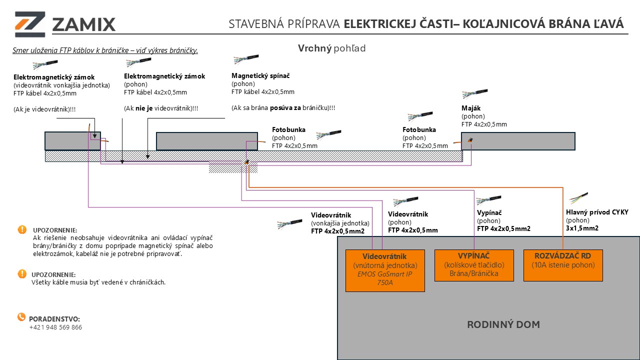 1× CYKY 3×1,5 mm² – napájanie pohonu (hlavné napájanie = rovnaký kábel)
