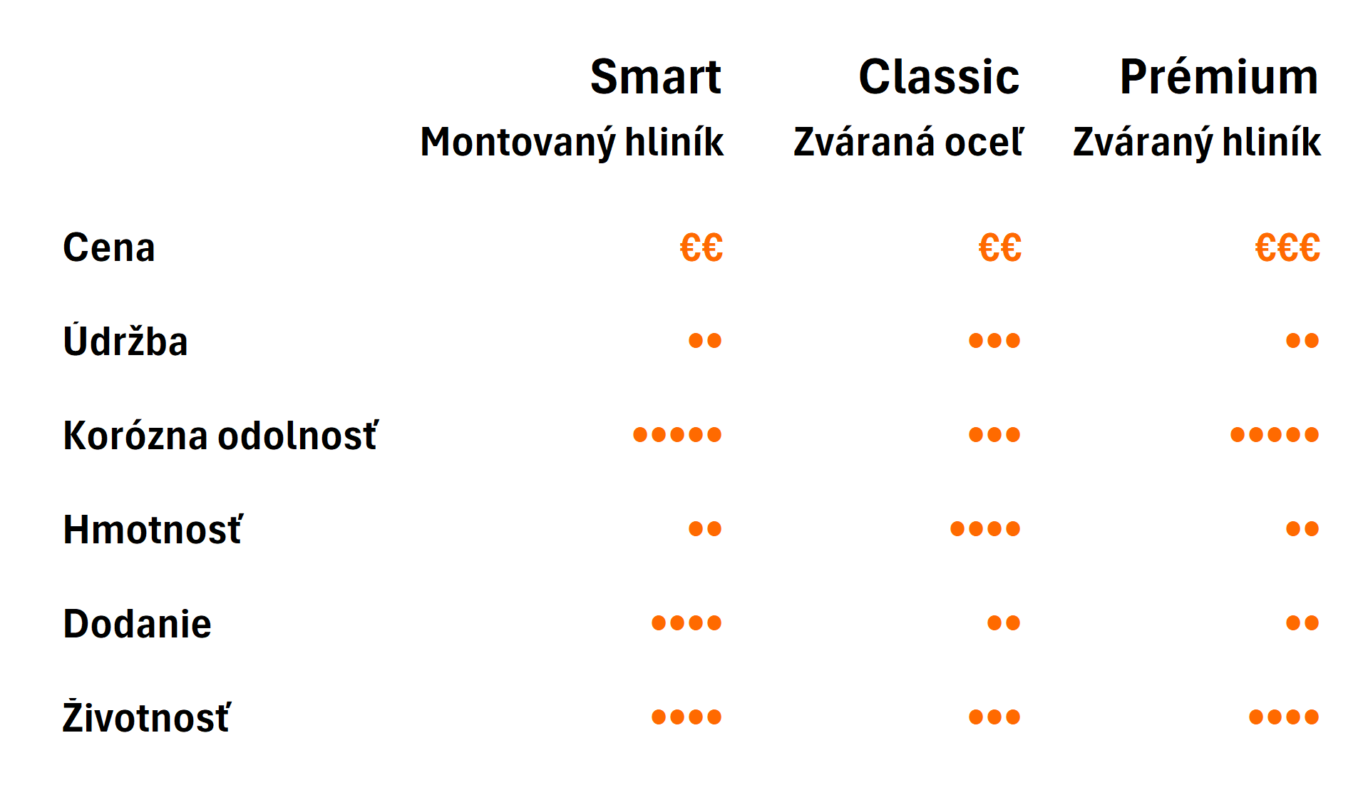 Ponuku získate v troch variantoch: Smart – montovaný hliník, Classic – zváraná oceľ a Prémium – zváraný hliník.