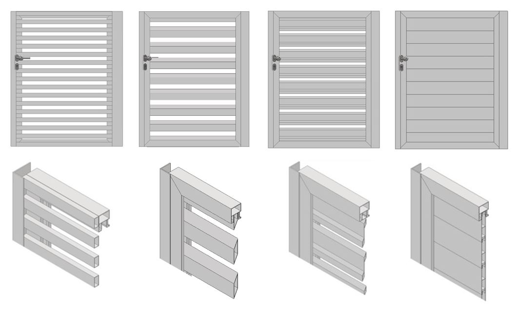 Ponúkame dve dizajnové riešenia, lamely umiestnené v ráme alebo na ráme. Typ výplne aj mieru súkromia si zákazník volí podľa vlastných preferencií.